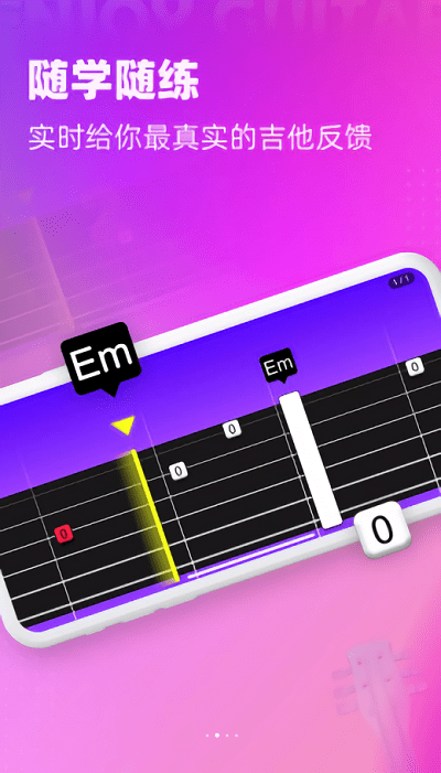 1,随时学习,模拟程序,用户可以使用软件中的设计开发的专业模拟程序来进行吉他的模拟演奏和学习,提高自己的能力随时进行演奏练习。