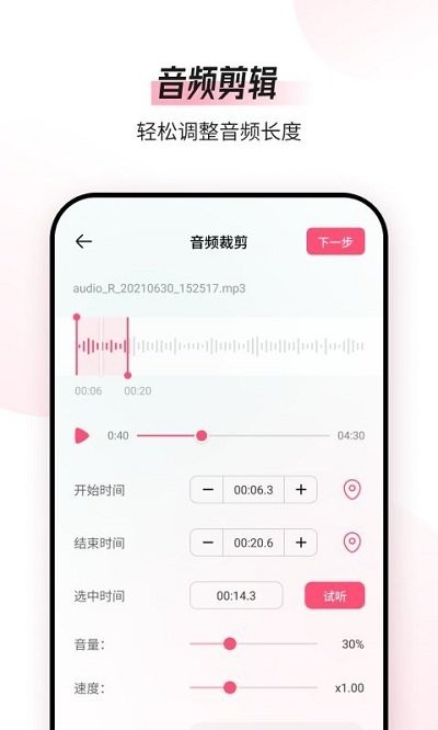 1、可以自由的选择音频裁剪范围,帮助您裁剪出需要的音频片段