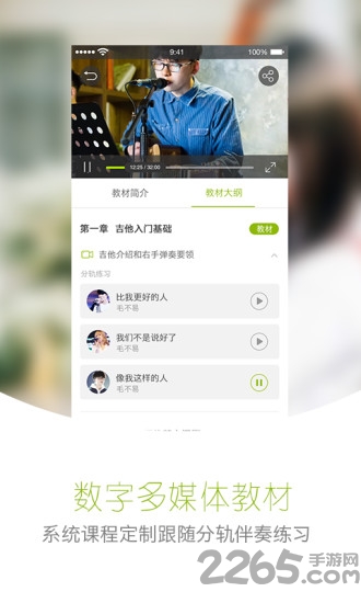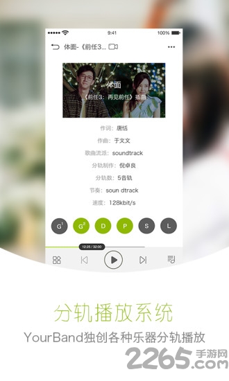 民谣吉他、电吉他、架子鼓、钢琴等乐器教学练习辅助及伴奏软件 .精心打造的海量乐器分轨伴奏,可将歌曲的主旋律/吉他/鼓/钢琴键盘关闭作为伴奏或单独听以上某乐器学习,把你的乐队装进手机.新海量热门歌曲分轨伴奏,专业编曲老师制作精准曲谱,玩音乐,超简单