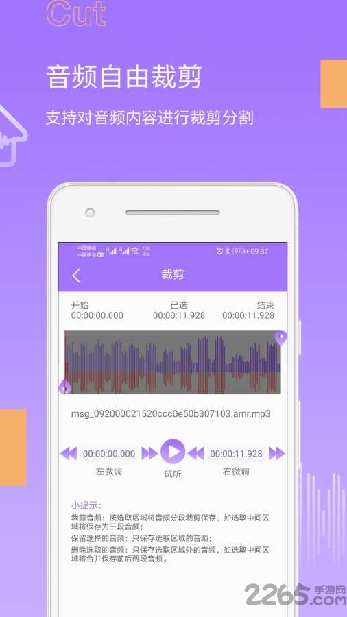 - 音频自由裁剪,支持对音频文件进行裁剪分割,保留精彩声音内容!