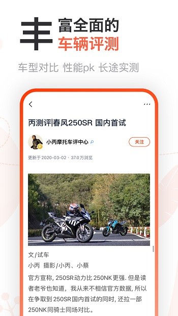 及时更新收集全球摩托相关动态。车型对比、性能pk、长途实测等深度评测。新车上市,摩界讯息等各类热点爆点,还可订阅喜欢的车辆信息,一键及时获取。