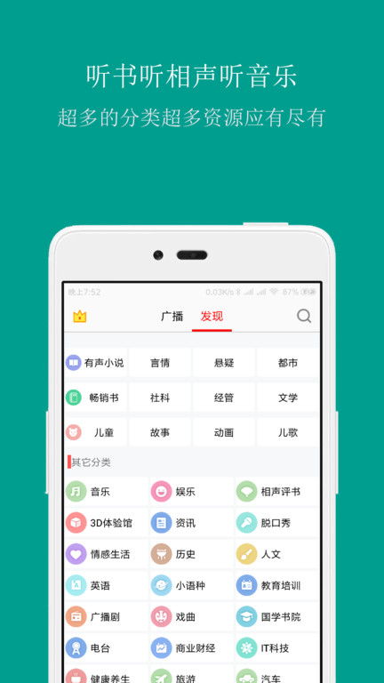 3.超多的电台音频内容的分类满足你的不同的收听喜好;
