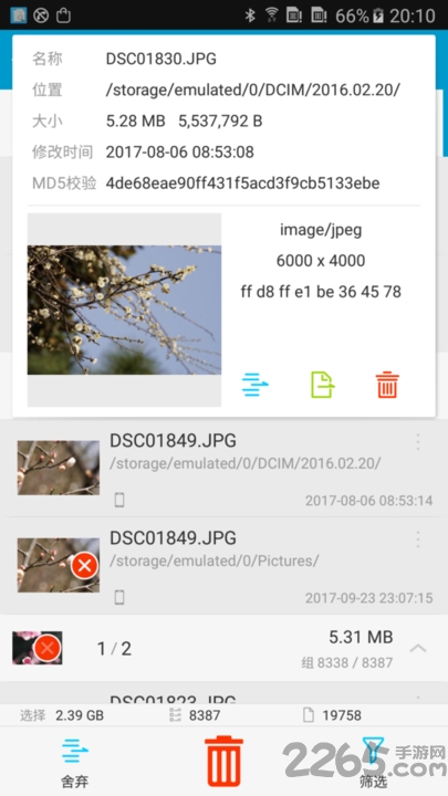 手机重复文件清理软件可以轻松准确的找到并且删除那些多余的重复文件!重复文件占用了 Android 设备大量的存储空间,它会降低您搜索文件的速度,并且阻止您下载更多的图片、音乐、视频和 Android 应用。对于我们来说,一个一个找出并删除非常困难。它能为您的Android设备释放大量的存储空间!
