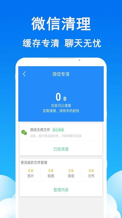 【微信清理】智能微信清理,清理聊天缓存,朋友圈缓存等,加速手机。