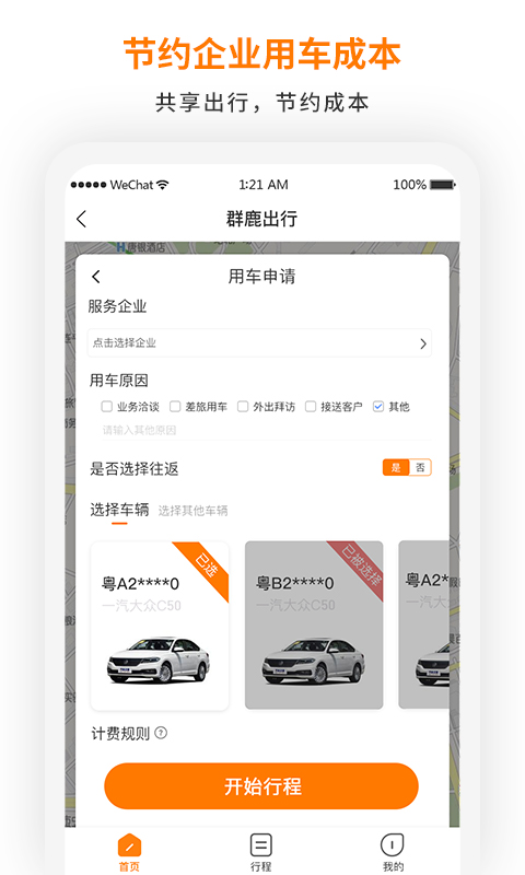 【节约用车成本】企业员工车辆共享出行,相对于租车、打车等节约企业用车运营成本.