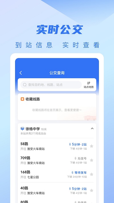 提供实时公交和轻轨到站时间信息,同步展示公交拥挤度