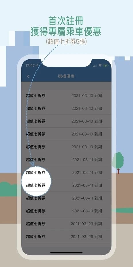 首次注册获得专属乘车优惠(超值七折券5张)