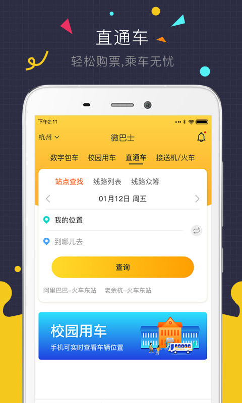 微巴士是集巴士查询、手机移动支付购票、巴士停车站点导航、以及巴士实时运行信息查看等功能的手机应用。让出行更加方便快捷。可以帮助用户提前查看并购买专线车票,并且电子乘车票避免了纸质车票容易丢失的问题,更加方便用户验票乘车。