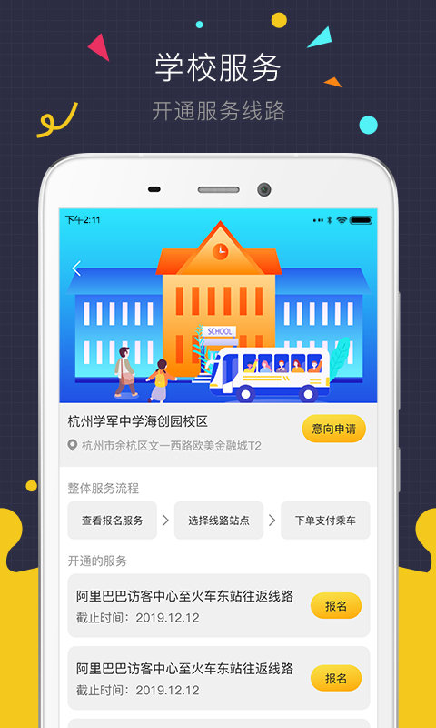 4、可以在这里及时报名学校路线,让您可以轻松的获得对应的出行服务;