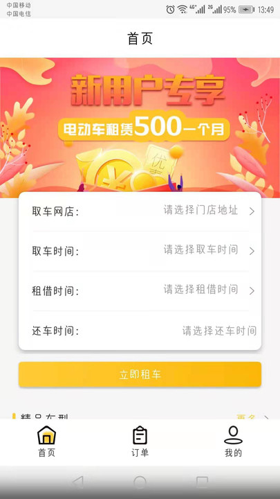 3、一键下单,极速租车,让出行生活更加便捷,一键下多单,您可以根据您的需求选择不同车型下单,为您出行提供舒适快捷的一-站式服务;