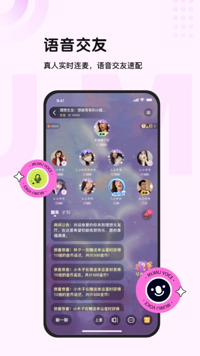 木木语音app是一个深受广大用户朋友们喜爱的语音交友app,您的掌上社交神器,让您通过声音认识新朋友,新颖且有趣。多人连麦不卡不顿,随时随地轻松畅聊!喜欢就不要错过,绝对是你不会后悔的选择。