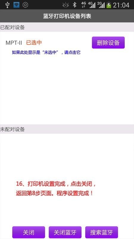 12、确认蓝牙打印机电源已打开,然后点击搜索蓝牙