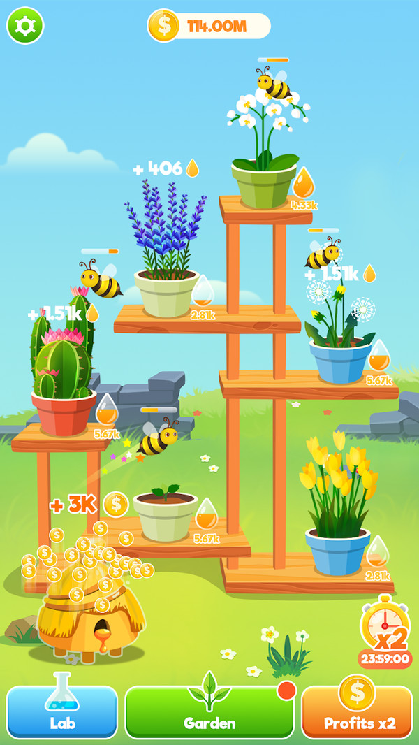 3、种更多的花,买更多的蜜蜂。通过你的努力,你将拥有最美丽的花园,成为蜜蜂大亨。