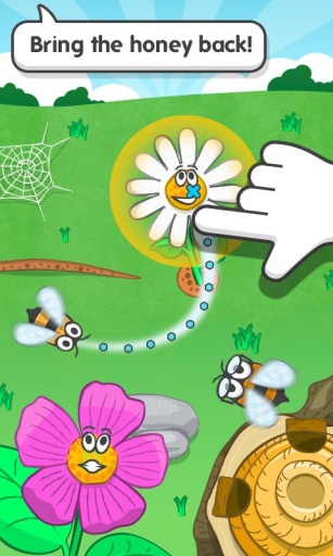 《操纵蜜蜂》对游戏中的花朵进行采蜜。这个游戏看上很简单,其实也非常考验操作。游戏中有许多阻碍小蜜蜂回巢的障碍物,这些障碍物有时候会出现在非常刁钻的位置,必须有像蜜蜂那样灵敏的行动能力才可以避开它们。是一款非常具有趣味的游戏。