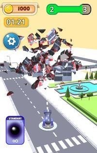 游戏画面简单,玩家可以使用多种工具拆除城市的摩天大楼,玩起来轻松解压。