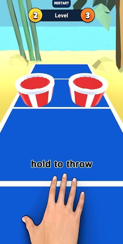 1. 瞄准前方的水杯,将手中的乒乓球投射到水杯中得分;