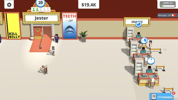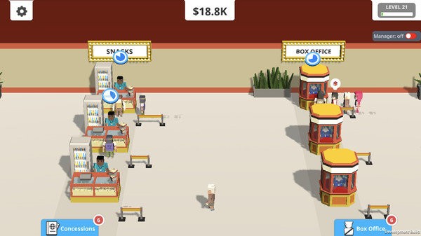 《闲置电影院》是一款模拟经营游戏,游戏中你需要经营你的电影院,让来你电影院看电影的人络绎不绝,这样就可以带动饮食业的发展,获得除电影之外的丰厚利润。