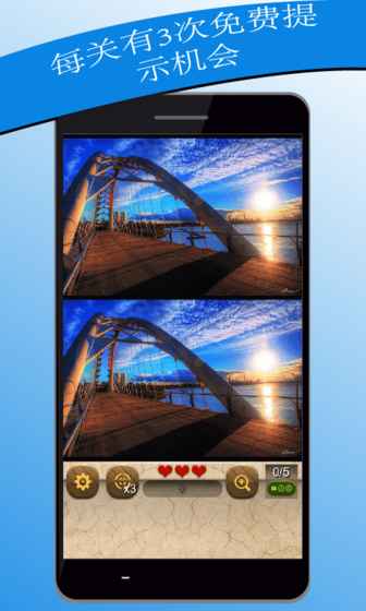 《闯关500找不同》是一款免费的解谜闯关游戏,这种刺激、经典的游戏也经常被叫做“找不同”、“不同点游戏”、“找一找”,在游戏中你需要在两张相似的图片中找到被隐藏的不同点。记住游戏没有时间限制,而且每关有三次免费的提示机会,让你真正可以享受到轻松愉快的游戏时光。
