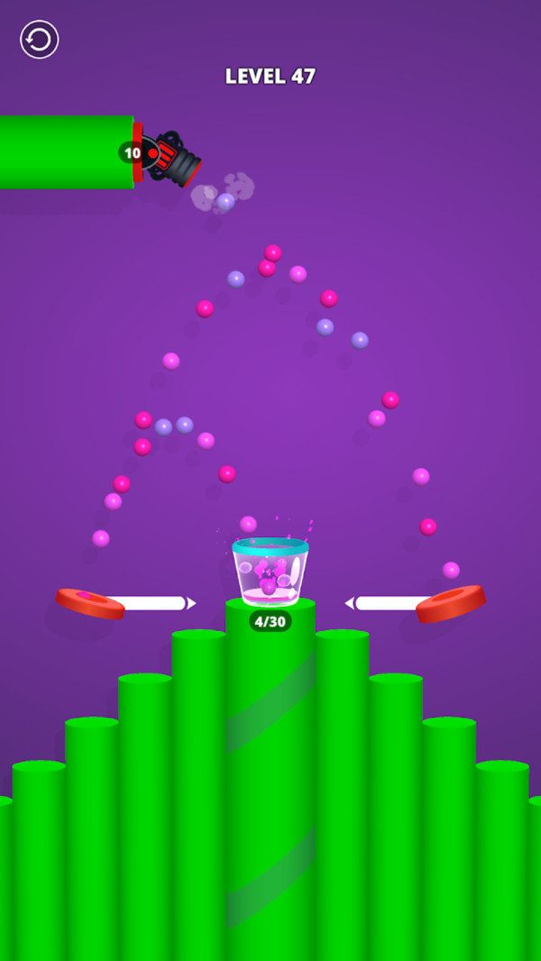 都会有一个空桶,需要让大炮射出来的小球全部抵达到桶中。