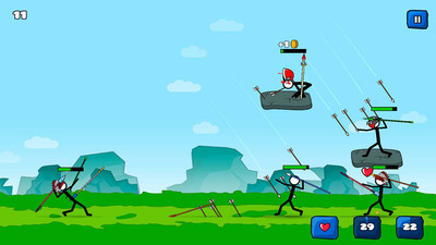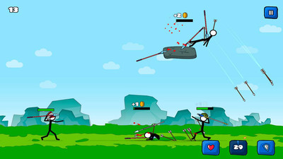 在敌人火柴人瞄准和射击。拖放你的手指进行定位和射击。