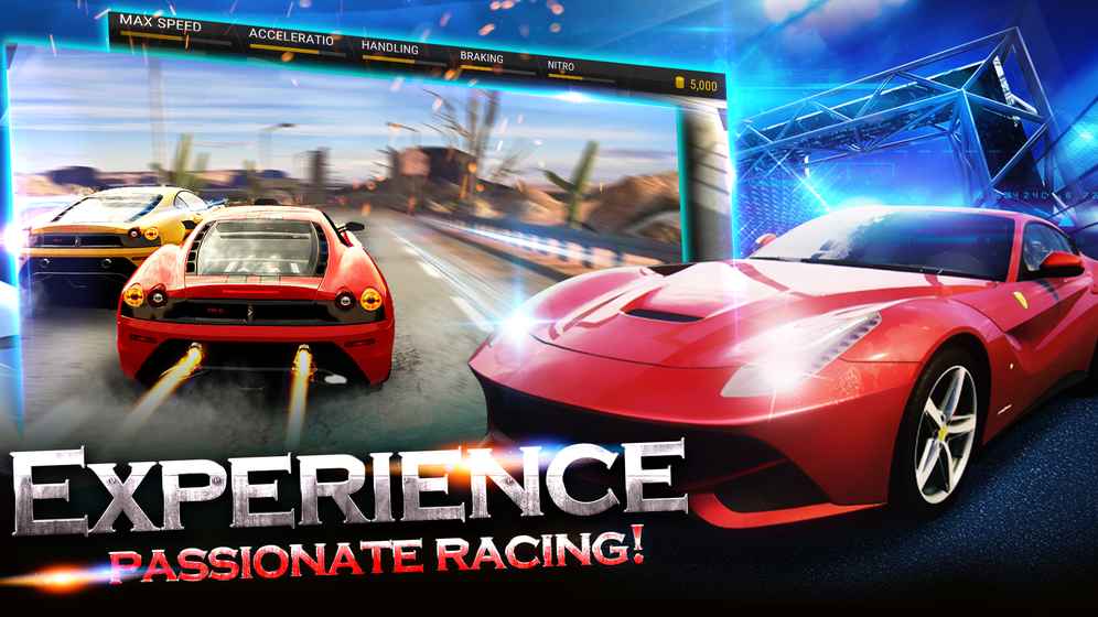 4、超级跑车公路赛是无尽街机模拟赛车游戏的一个里程碑,通过城市、雪地和沙漠公路赛车来增加你的现金,升级和购买新车,挑战更好的成绩。是时候来选择你最喜欢最漂亮的车了,加入终极挑战,试着成为最快的司机!