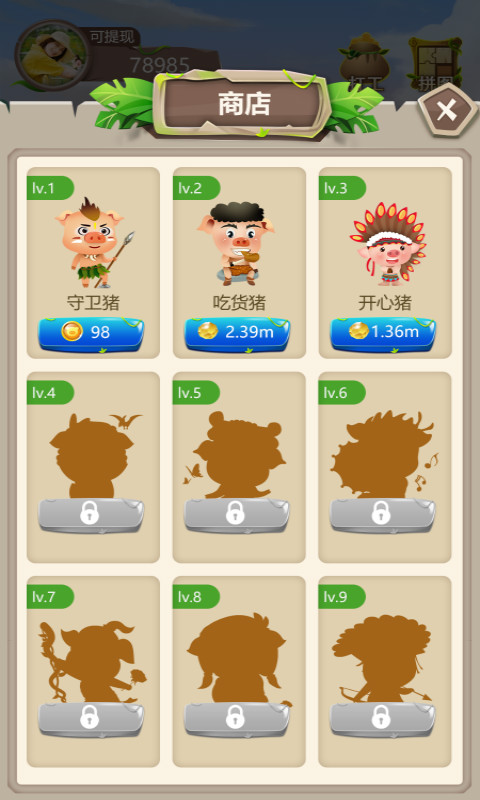 3、玩家将不断购买升级小猪来获得奖励,还有简单的喂养模式,完成任务就能拿钱。