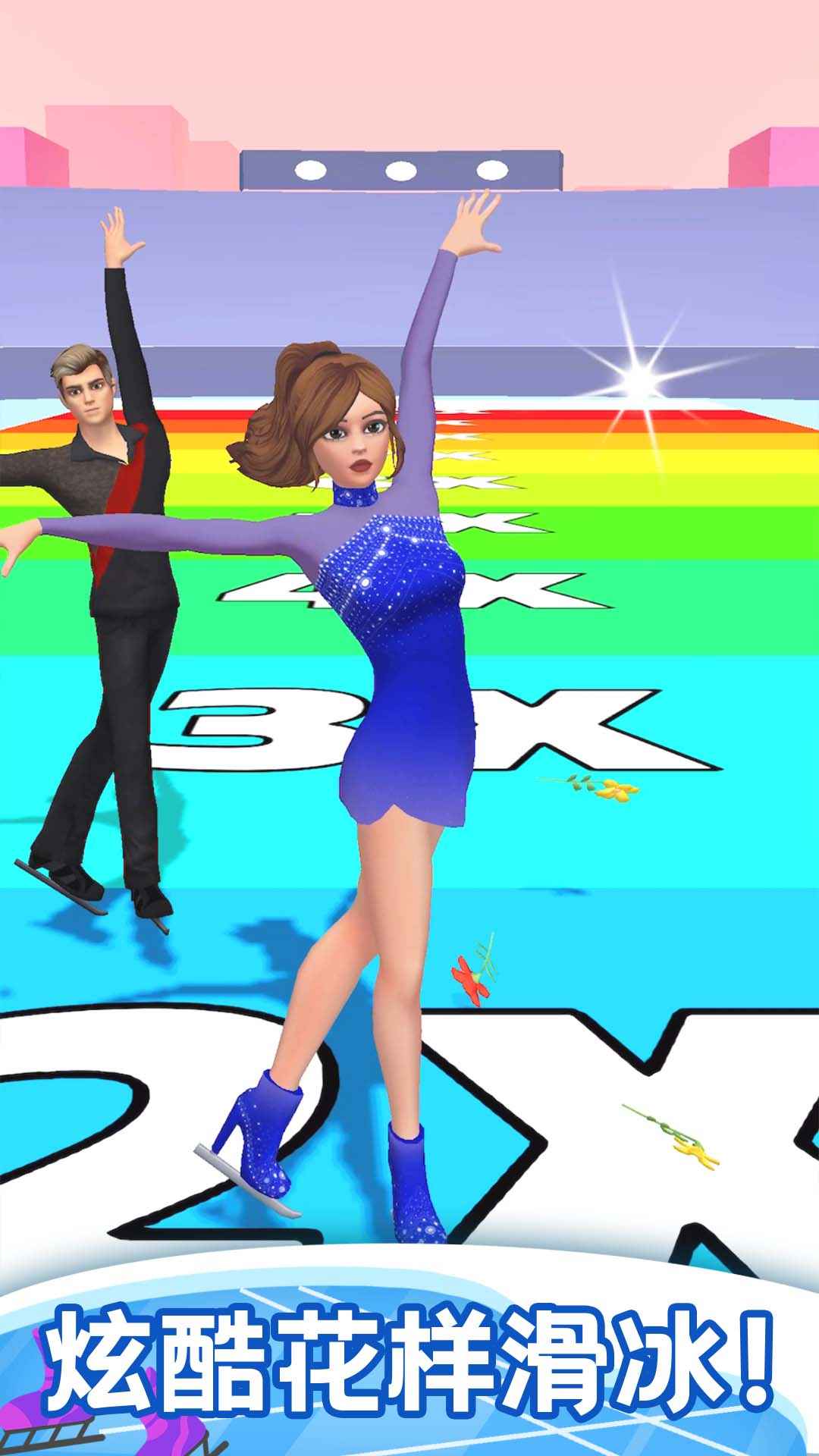 设计一个美丽的舞蹈,让角色在溜冰场上跳舞。