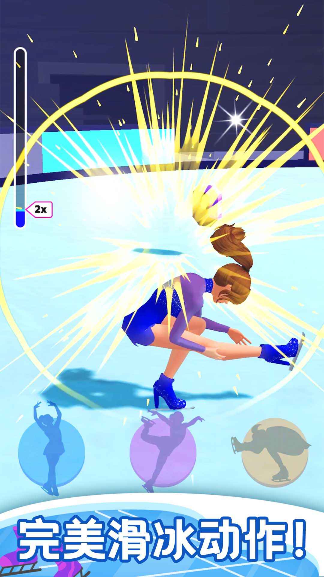 在这里,可以在不离开家的情况下进行不同的花样滑冰动作,画面精美,可选择不同的闯关模式。