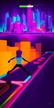 1、想象一下在摩天大楼上方的电子朋克环境中,跟随霓虹灯并避开障碍物。
