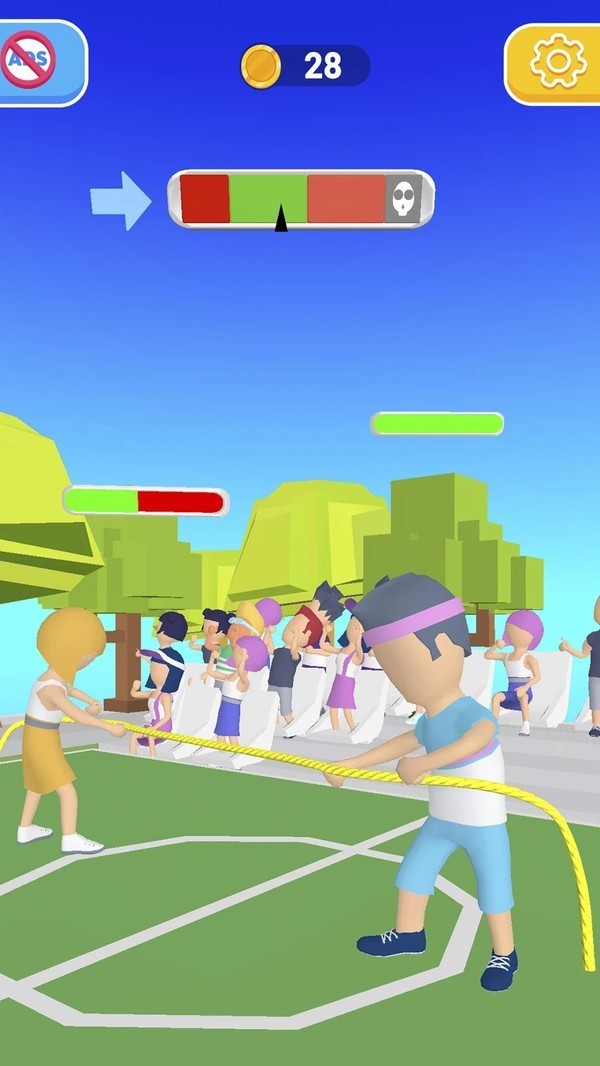 1、拔河比赛中你需要时刻观察角色的动作,让自己找到最适合发力的动作。