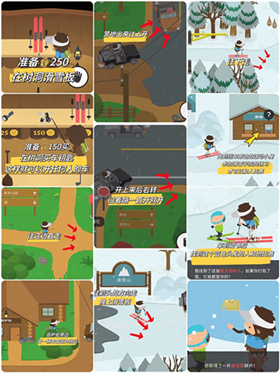 3、滑雪:250先去缆车旁边的小屋学习滑雪,然后和蓝色头发的人比赛。