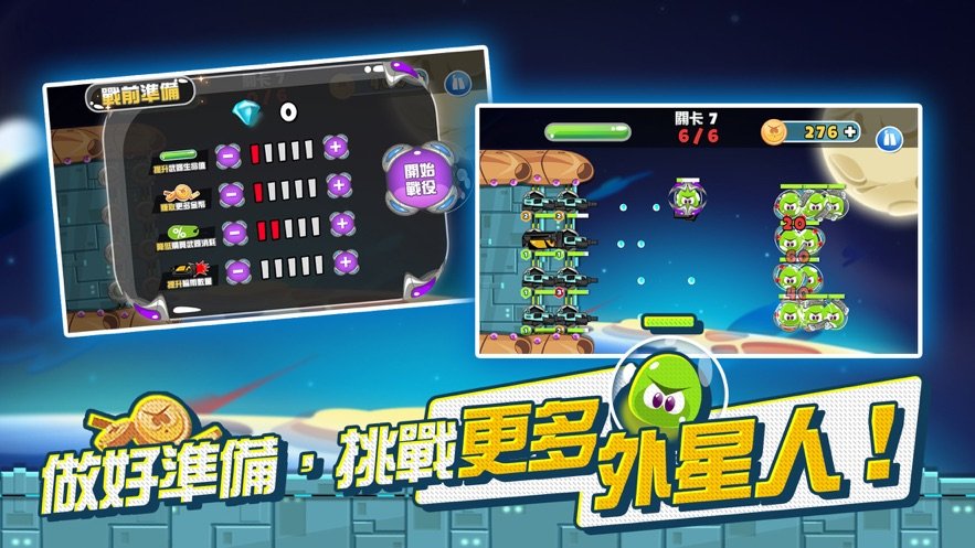 作为太空护卫队的一员,现在我们遭到了外星人的入侵,需要你建造大炮,驾驶飞机去太空迎接敌人,把他们打的屁滚尿流!《潜海飞船》是一款休闲冒险游戏,游戏玩法十分简单,只需要合理的布置飞机和大炮就可以打败敌人了。