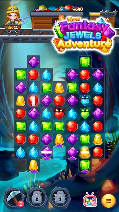 1、新奇幻珠宝冒险游戏关卡的难度会不断的提升,在后面的关卡玩家得不断的思考。