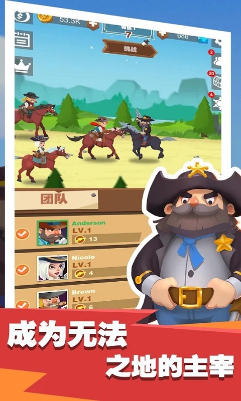 西部大侠盗无限钻石版是一款趣味十足的动作冒险射击手机游戏!欢迎來探索一个真正庞大而开放的狂野西部世界,这里充满了牛仔,强盗和更多的敌人。成为一名西部牛仔,孤独,无畏,身手不凡。左挑战黑帮势力,史诗级的战斗场面,与警察斗智斗勇,免费的挂机类游戏。喜欢牛仔类游戏玩家的福音!轮手枪握在你的手里,你能决定任何人的生死,组建你的团队,征服西部,最好玩的免费牛仔游戏!