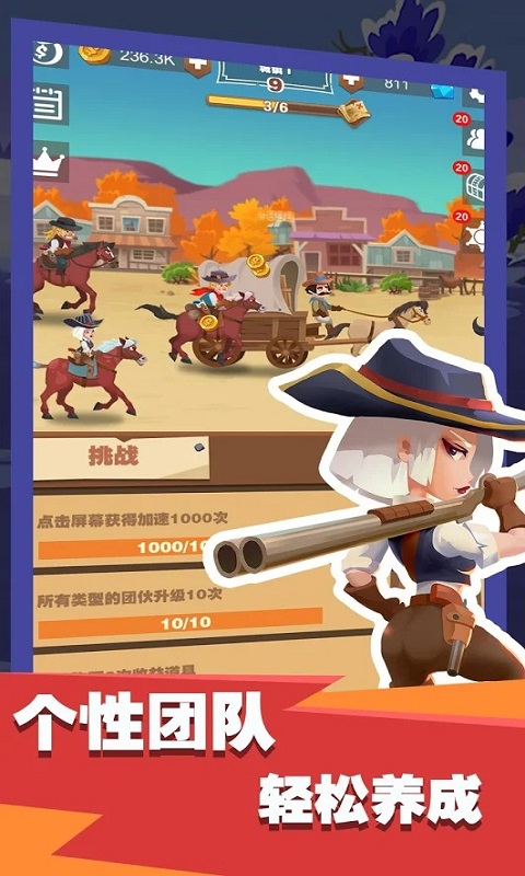 2、各种强大的骏马坐骑,多种特别炫酷的牛仔服饰装扮,任你随意的挑选搭配。