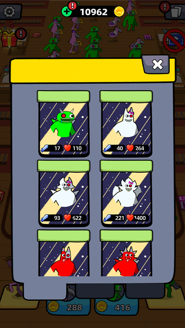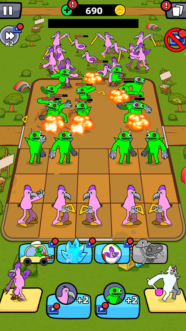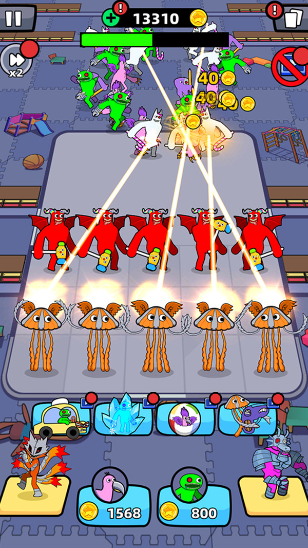 在这款游戏中你需要不断合成不同的怪物来抵抗敌人的进攻,同时消灭敌人就能够提升自己的军队实力。