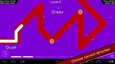 别出轨(Run for your line)是一款考验反应和精准的游戏,游戏中你在需要在改变方向的地方,点击屏幕。
