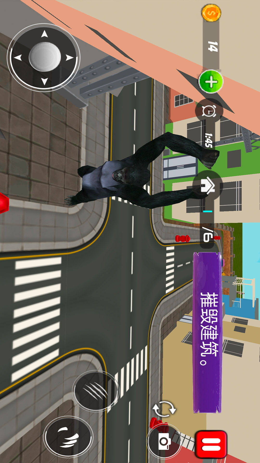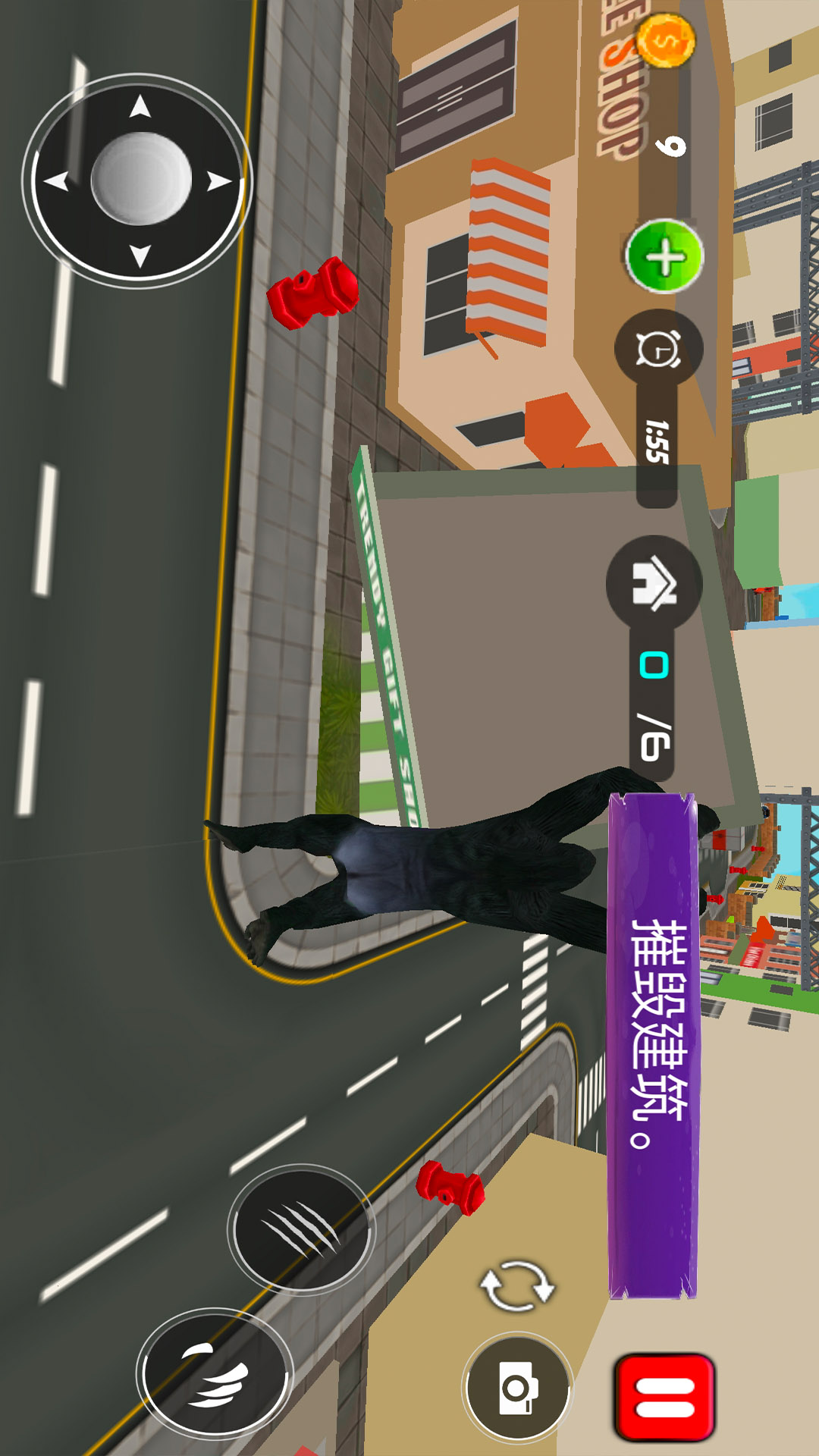 滑动屏幕控制金刚,让金刚在城市中“横冲直撞”。