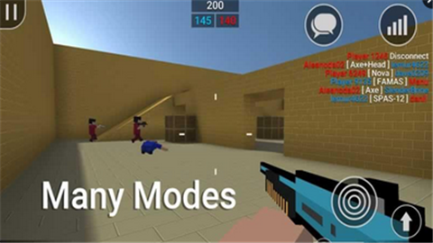 《块状射击》是一款像素风射击游戏。游戏玩法类似CF和CS,你可以选择加入一个房间进行战斗,或者创建一局游戏,你的目标就是杀死所有敌人。还有僵尸模式,和你的队友一同与僵尸作战。快来下载体验一下吧。