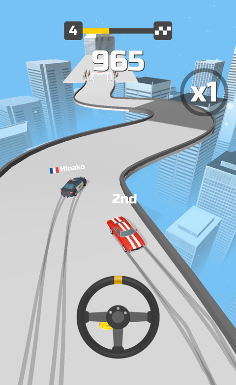 2、游戏采用竖版操作,玩家需通过转动屏幕中间的方向盘,来控制赛车在赛道中进行漂移等操作;
