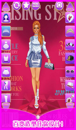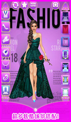 时尚模特大赛玩家可以任意发挥,展现自己的穿搭能力,帮助主人公完成这场时尚模特大赛游戏比拼。就像是童话世界中走出来的人物,你可以在这里尽情的玩转换装玩法,通过了解各类知名歌手和时装装扮来获得不错的曝光,让这些明星来请你打扮。游戏中一共有超过8个背景可以选择。