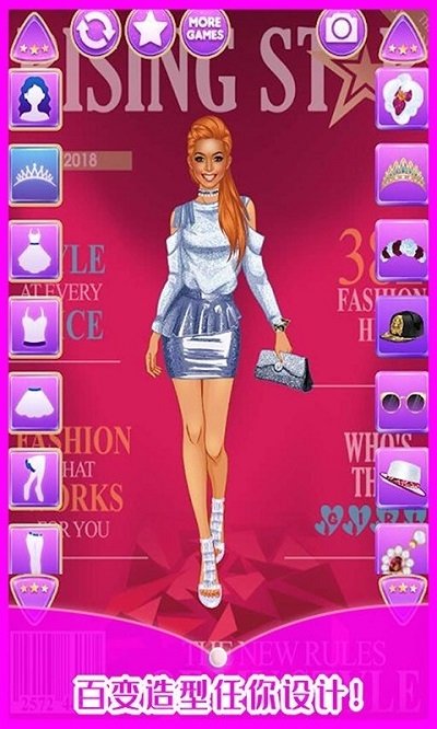 时尚模特大赛这款游戏中每一个超模都要有好看的发型炫酷的服饰还有配饰包括高跟鞋耳环项链等等。