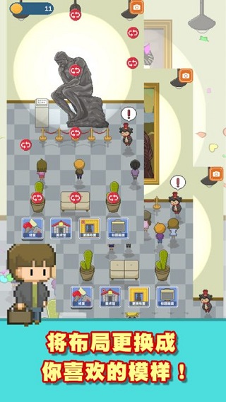此外,该游戏作为一款经营,玩家还可以根据喜欢的风格进行自由布局,独特的装修风格是吸引游客的关键,现在赶紧来美术馆做好管理经营吧!