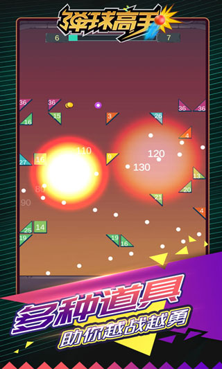弹球高手官方正版是一款趣味十足的很容易上瘾的物理弹射类打砖块消除游戏,采用超棒的精美物理敏捷图形设计,沿用过关创新模式,加入了闯关和无尽的挑战模式,让每一次弹球变得与众不同,阻止砖块达到底端,你才能获得胜利,充分满足挑战和休闲两种类型玩家的游戏需求。游戏的操作与规则也很简单,按住屏幕水平拖动手指瞄准,放手发射等待所有发射中的弹球击碎砖块,玩家们通过增加球数与威力打砖块会变的更加容易。若砖块变得棘手,游戏中的小道具可以帮助您脱离当前的困境,注意弹球方向的控制能够帮助你的小球来实现无限的物理作用,能够让弹碰更加的迅速。弹球高手游戏提供了多个级别的关卡,你可以无限的来畅玩,激情的碰撞内心也是无比的喜悦,更有炫酷的荧光色彩点亮了整个荧幕,看似简单的操作能够增加更多人性的反光点,最强的弹球等你来挑战,感兴趣的朋友快来下载游玩吧。