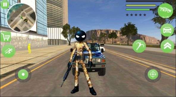 《终极陆军火柴人英雄》一个以火柴人为主题的射击游戏,在游戏中成为具有特殊能力的陆军火柴人,在城市中自由探索,消灭所有邪恶力量,并使城市秩序更好,游戏易于操作,并且有许多可以解锁和使用的车辆,完成任务可以获得许多武器,有兴趣的玩家快来下载吧,超好玩的游戏不要错过哦。