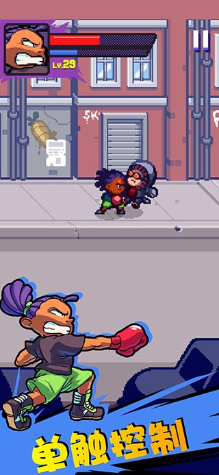 格斗街区手游是一款致敬90年代清版动作游戏的作品,为什么致敬90年代清版动作?因为“清版”指要把版面上所有敌人都清掉才能前进,“动作”则表示你清版是靠拳打脚踢的动作而不是发射子弹或激光(那是清版射击,比如雷电之类,一般叫打飞机)。在街机游戏的历史中这类游戏扮演了重要角色,甚至可以说是绝大多数人回忆的全部。那格斗街区手游是怎么致敬的呢?和90年代清版动作游戏一样,格斗街区也是一款清版游戏,并且在以前所有清版游戏的功能基础上,增加了在线合作功能,可以和远方的朋友一起合作通关,把以前清版游戏的操作简化了很多,只需要一只手指触碰手机屏幕就能玩起来,让玩家更加容易上手。虽然操作简单,但是关卡并不简单,所有关卡都经过精心设计,好玩又丰富的动作打斗场面,而且加入了Maxo所创作的复古BGM,让玩家再次回到记忆中的那个年代。格斗街区手游还设置了很多格斗家供玩家解锁,解锁之后可以使用已解锁的格斗家进行游戏,让玩家可以尝试各种不一样的角色带来的动作快感,喜欢的朋友可以免费下载体验!
