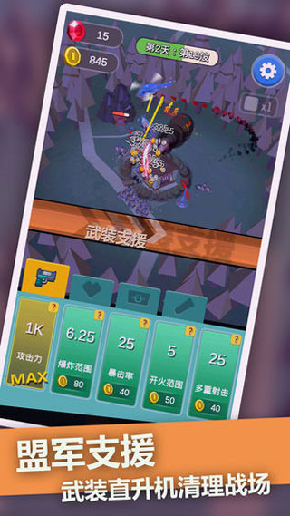 2、多种塔防武器选择,丰富的武器装备然玩家可以更加轻松的守住僵尸的攻击。