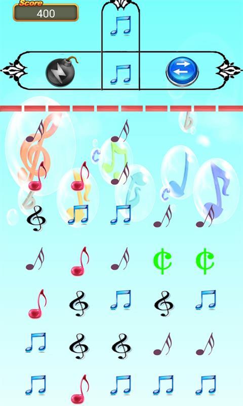 音符大爆炸带给玩家简单轻松的消除体验,以主流的八分音符为题材打造,充满了模型的玩法挑战,让你感受别样的游戏乐趣,挑战极限采用传统的玩法设计!一款非常有节奏感的益智类消除游戏,游戏的玩法看着有点像俄罗斯方块,游戏的音乐旋律非常的优美,只是听听音乐就会让你陶醉!当手指点击某一列时,上方第一列的音符会下落到这一列,且三个或以上的相同颜色音符碰撞时会消除。手指所指按钮可以调整音符位置,每下落五个音符左边炸弹会被点亮,点击炸弹可以把上方音符炸掉。