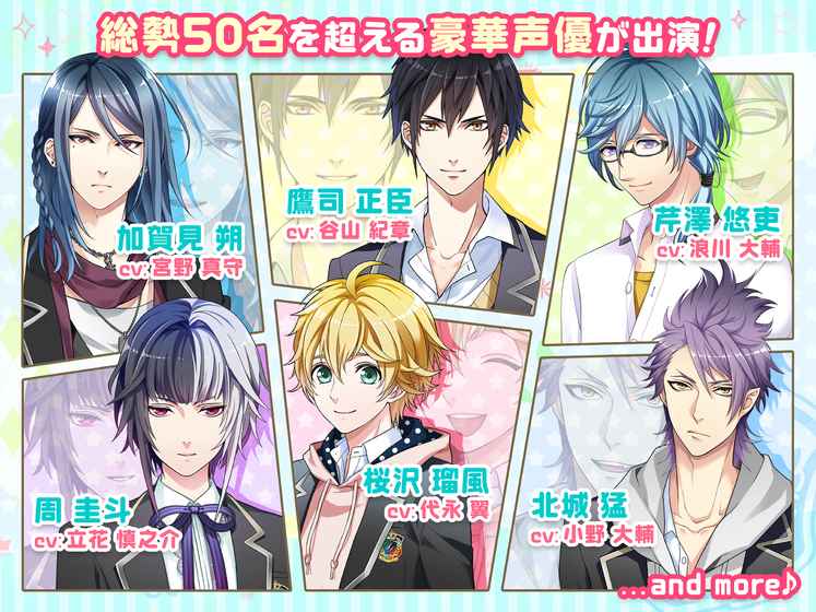 游戏以高中为舞台,玩家可以在学校中邂逅到各种本命角色的女性向恋爱游戏,在游戏中仍将扮演希望在学校中邂逅本命的少女,帮助各位帅气的男声成长为优秀的男性偶像。游戏拥有包括柿原彻也、铃村健一、关智一、谷山纪章、寺岛拓笃、福山润等超过40名的人气男声优出演。