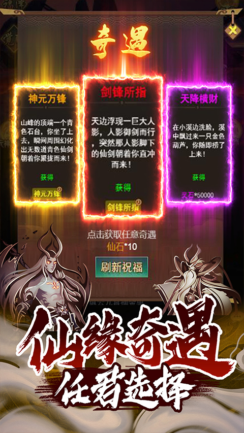 离线战斗,超高收益,每次上线都有新的提升!更有随机任务、奇遇气运,修仙路上轻松愉快!